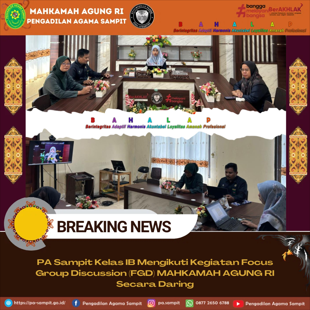 Selasa, 14 April 2026 Pengadilan Agama Sampit Kelas IB mengikuti kegiatan Focus Group Discussion (FGD) via zoom meeting di Ruangan Media Center