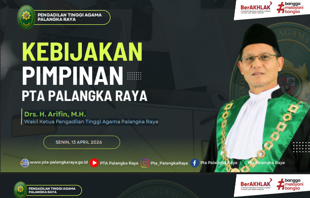 Palangka Raya, Senin 6 April 2026 — Wakil Ketua Pengadilan Tinggi Agama Palangka Raya, Drs. H. Arifin, M.H., menyampaikan pemaparan kebijakan pimpinan dalam kegiatan Rapat Koordinasi yang diikuti oleh seluruh satuan kerja di wilayah PTA Palangka Raya.
