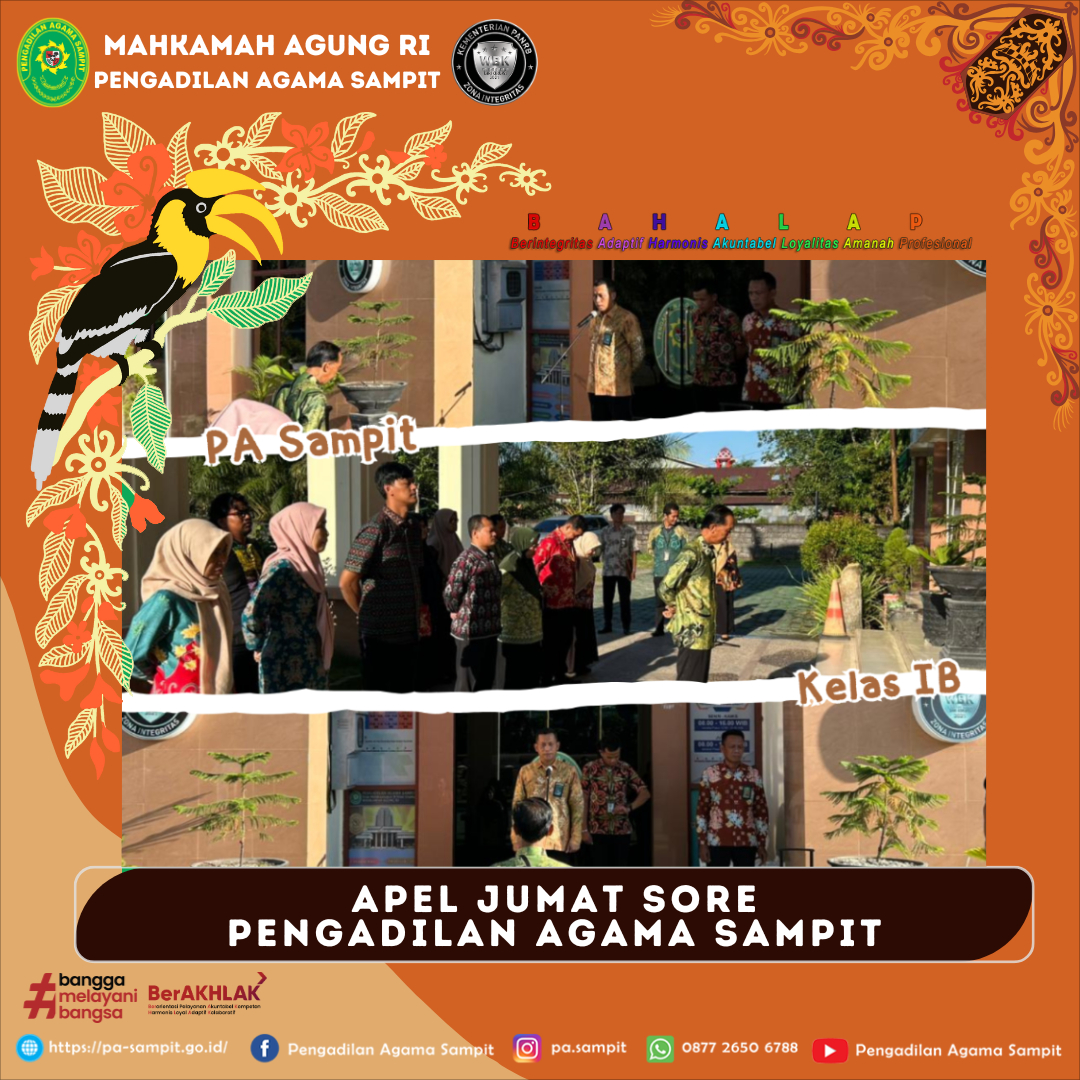 Pada hari Jumat sore 17 April 2026, pukul 16.00 WIB Pengadilan Agama Sampit kembali melaksanakan Apel Jum'at Sore.