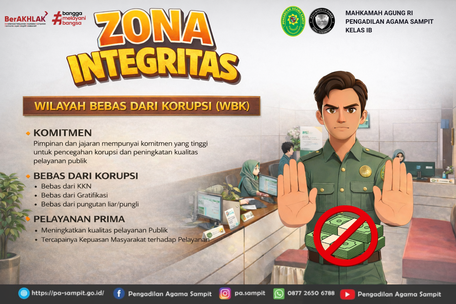 PA Sampit Kelas IB Berkomitmen kuat terus kami bangun demi mewujudkan lingkungan kerja yang bersih dari praktik korupsi, kolusi, dan nepotisme.